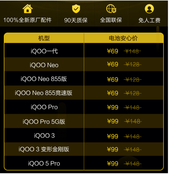 在上个月初,iQOO便正式推出了这项电池换新活动。参与活动的机型,将以十分实惠的价格更换手机电池。值得一提的是,更换的电池为100%全新原厂,并享有90天质保以及全国联保。相较于更换第三方电池而言,官方推出的电池换新显然更有保障。此外,本次电池换新活动将无需收取人工费,用户还可享寄修免邮费的权益,考虑得可谓十分周全了。