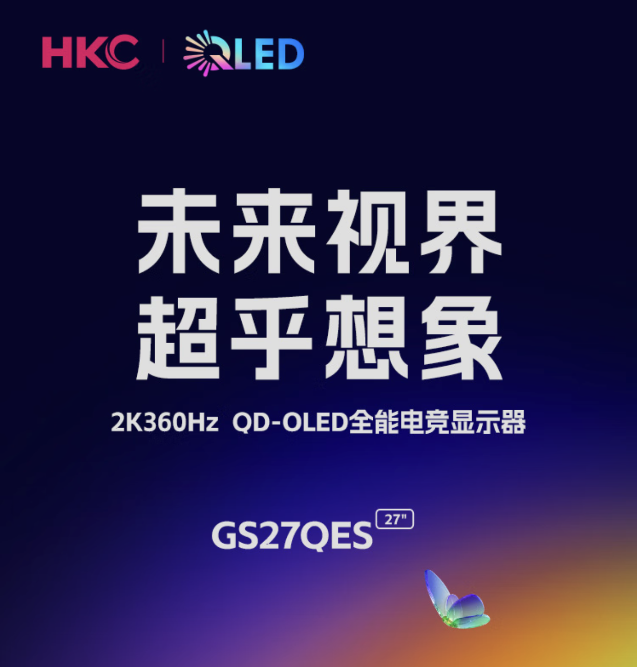 10月14日消息。近日,HKC正式发布旗下高性能电竞显示器GS27QES,该机型以27英寸QD-OLED面板、2K 360Hz高刷新率及原生10-bit色彩为核心卖点,定位中高端电竞与创作市场,首发定价2999元,即日起在京东、天猫等平台开启预售。