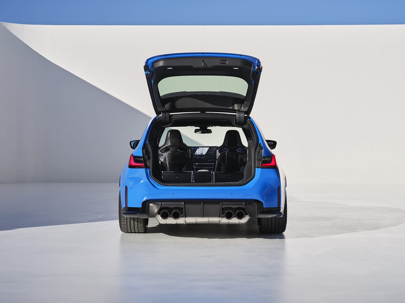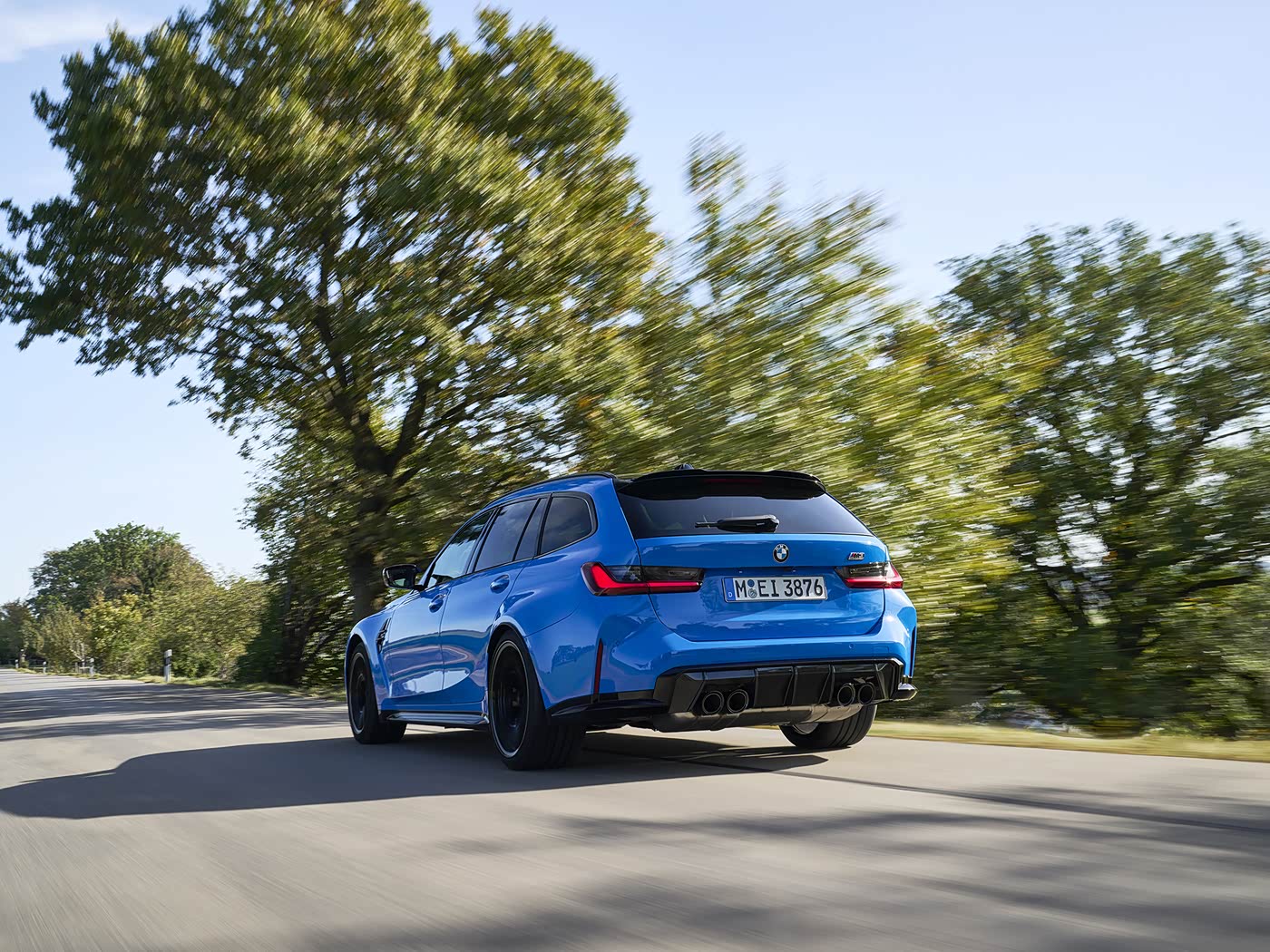 外观延续M系列宽体设计,细节焕新升级:前大灯组改用“7字形”灯腔并加入蓝色饰条,大尺寸双肾格栅与双通道前包围保留运动基因;车尾配备熏黑尾灯与双边四出排气,旅行版专属溜背线条兼顾优雅与实用,后备厢常规容积500升,后排放倒后可拓展至1510升。内饰搭载全新平底M运动方向盘,12点位红色回正标强化驾控氛围,空调出风口由银色改为黑色提升质感,12.3英寸全液晶仪表与14.9英寸中控屏组合不变,内置BMW Operating System 8.5系统。