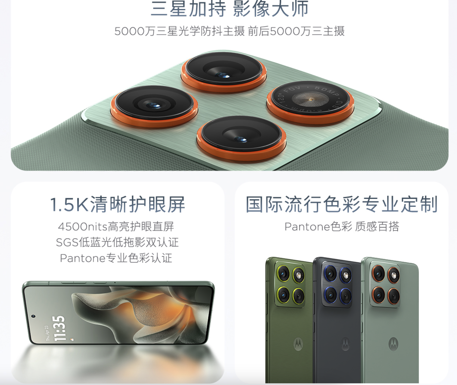 尽管主打轻薄,moto X70 Air并未在核心性能上妥协。据供应链爆料,该机或搭载高通骁龙8 Gen 4处理器(台积电4nm工艺),配备LPDDR5X内存与UFS 4.1闪存,安兔兔跑分预计突破180万,满足日常多任务与主流游戏需求。屏幕方面,采用6.3英寸1.5K OLED直屏,支持120Hz自适应刷新率与1920Hz高频PWM调光,峰值亮度达1600尼特,兼顾显示细腻度与护眼需求。